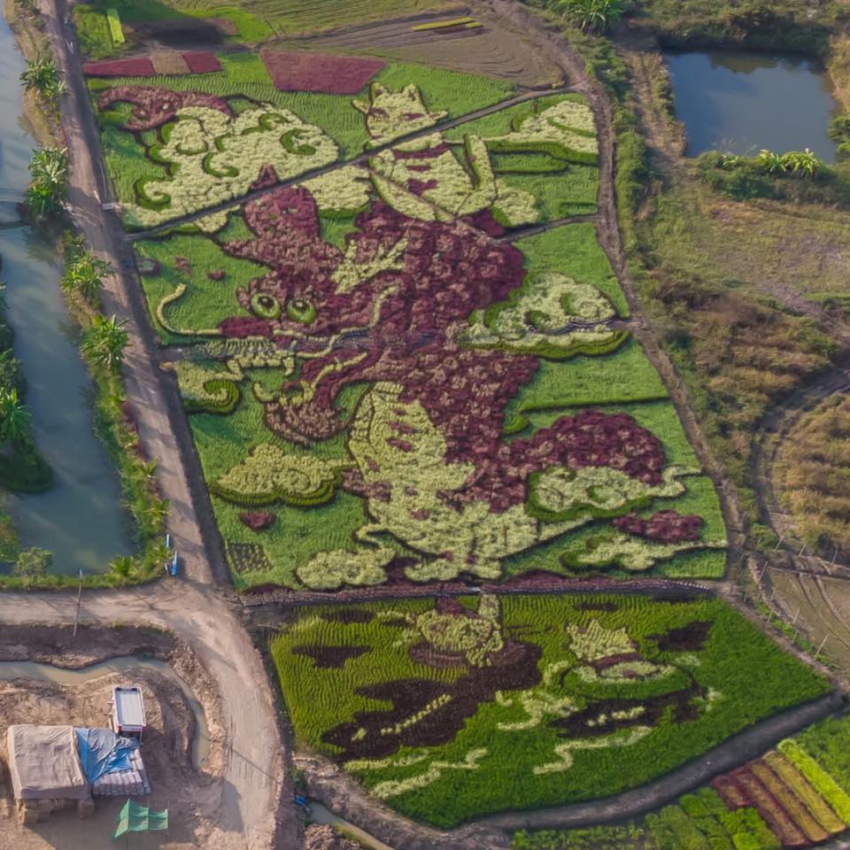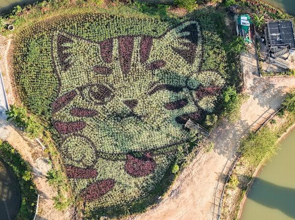 ศิลปะบนนาข้าว เกี้ยวตะวัน ธัญฟาร์ม #เชียงราย